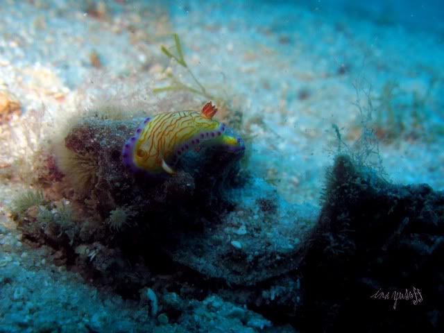 here we saw quite a few nudis and sea hares. even saw a couple of sea hares doing "it" doggy style.. huhu