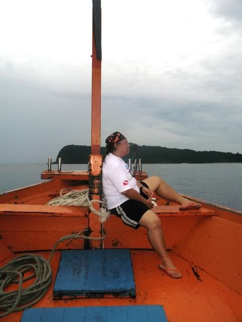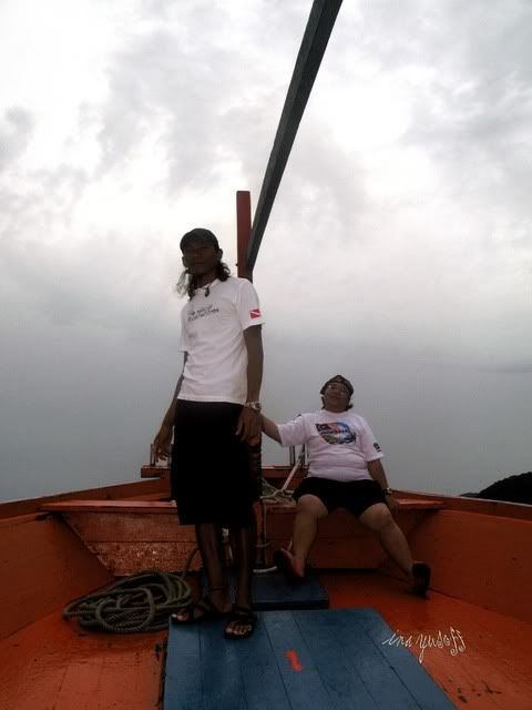 anyway... before we went down to holy sand, stopar stopped by with lunch and coke. during lunch he invited me and jon to kampung redang.. he said he's picking us up at 5 pm. so as soon as we reached macha's dc, i took a quick shower and woke jon up and hopped on gypsy divers' smaller boat with ayie and kamal and headed to stopar's boat, Sembilu II....