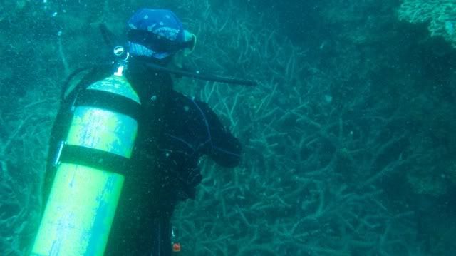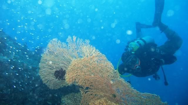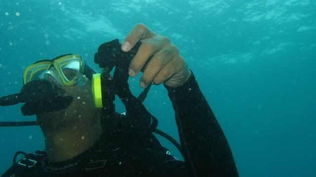hmm.. our last dive.. i had some problem descending. turns out my inflator hose was not connected. so i was descending fairly slowly. luckily i had big breakfast, so i guess the added weight really helped