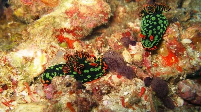 i didn't have problems equalizing.. unlike the first two dives. saw lots of nudis but i was having problems staying still. hehee.. so none of the pics were ermm... worthy to be shown here. saw a huge scorpionfish resting on the rocks. it was damn big lah. and then i saw another nudi. tried so hard to take a decent picture. *sigh* ... luckily aquaholic waited for me. i lost the group again. and a few minutes of circling around, i ran out of air. and we ascended.